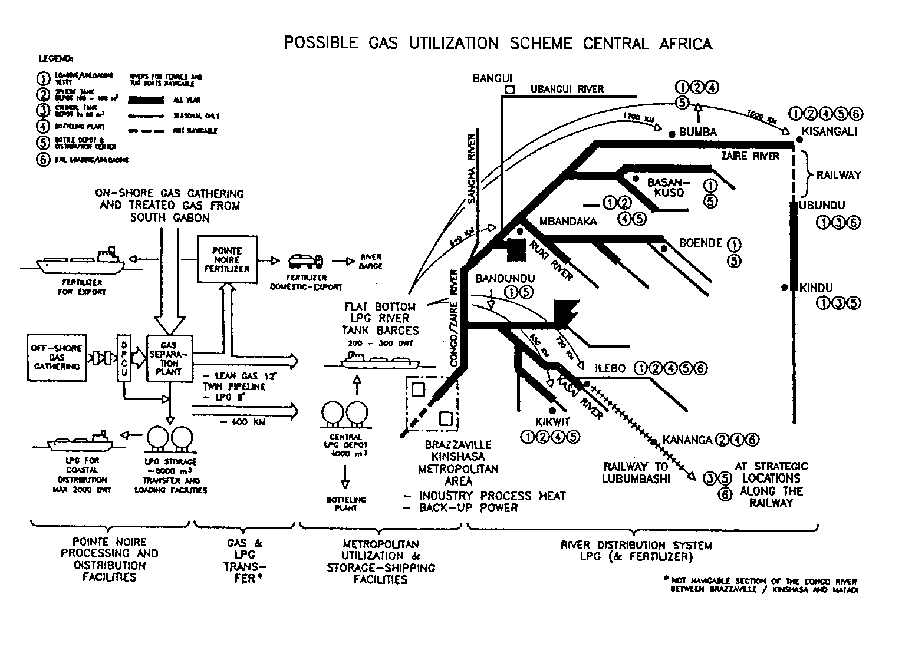 Based on a cost analysis of typical natural gas utilization such as power generation and ammonia/urea production the study presented an economic evaluation and financial analysis for selected project packages. In particular the following systems were studied: a trans-Sahara pipeline connecting the Gulf of Guinea with the European market via a westcoast route; a 30 mmcm/d LNG plant in Nigeria for export to the USA; a Tanzanian and Mozambique gas utilization programme; and a Central African gas distribution system employing the Congo river network as a means of transportation.