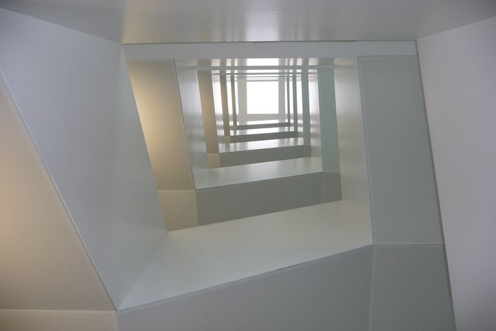 Das Bürogebäude ist ein siebenstöckiger, rechteckiger Kubus mit vollverglasten Fassaden.