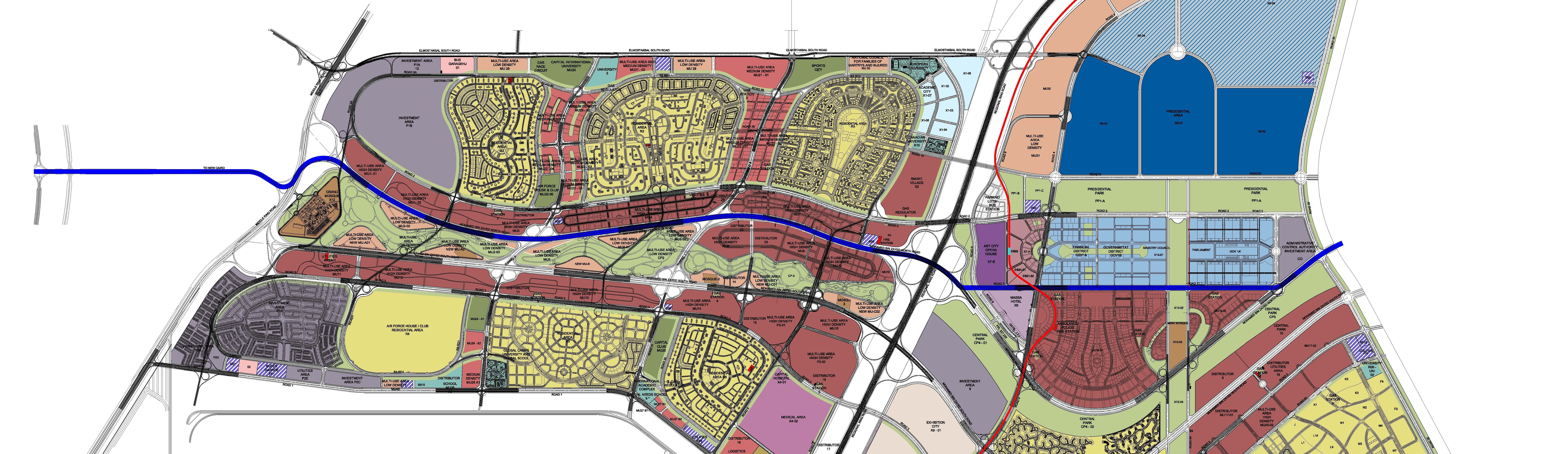The new Administrative capital is located between Greater Cairo and the Suez Canal territory near the Regional Ring Road and the Cairo/Suez Road. The area is planned to accommodate the parliament, the presidency and the governmental area including all the ministries, as well as foreign embassies, and the project also includes a major park called the green river and an international airport.